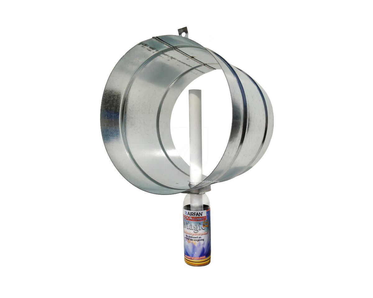 El Ondor-Connect Kit Magic de Airfan, es un dispensador de fragancia neutralizante, que puede montarse directamente en la boca del extractor o cualquier otro punto de canalización.