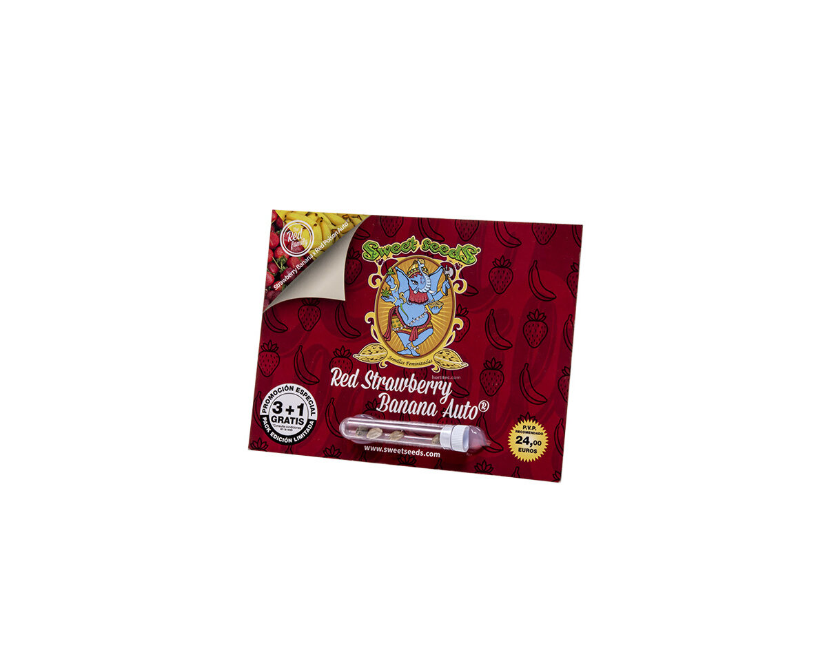 La Red Strawberry Banana Auto alcanza una altura entre 50 y 110 cm, con rendimientos de 400 a 550 g/m2 en interior y de 35 a 175 g/planta en exterior. Podrás degustar sabores afrutados, dulces, con toques de golosina, nuez y rúcula; y experimentar sensaciones relajantes, de felicidad y aumento de tu creatividad.